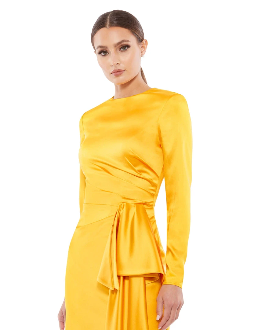 Ieena For Mac Duggal Asymmetrical Draped Long Sleeve Mini Dress