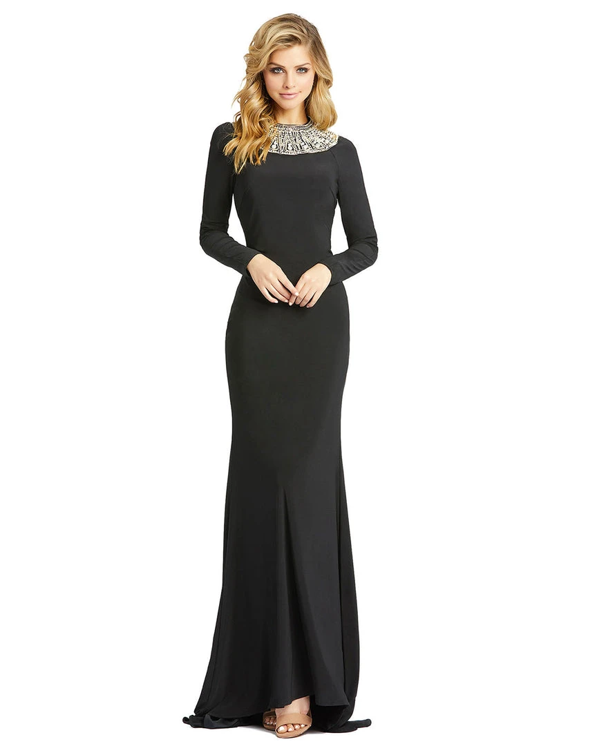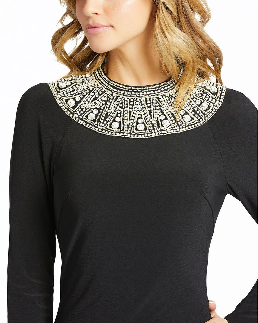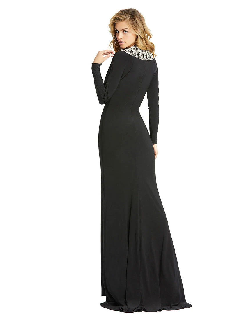 Ieena For Mac Duggal Embellished Collar Jersey Gown