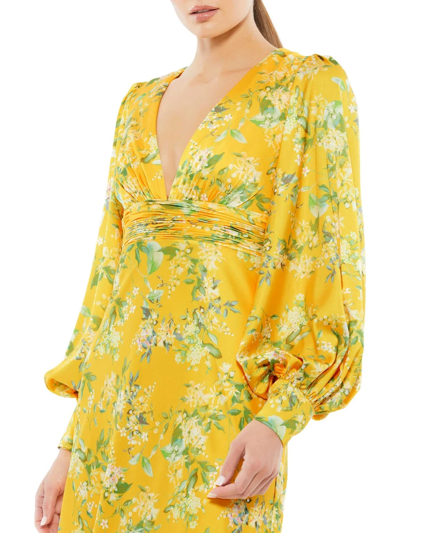 Ieena For Mac Duggal Floral Bishop Long Sleeve V Neck Gown Shop For