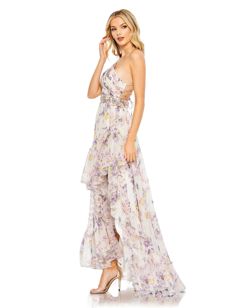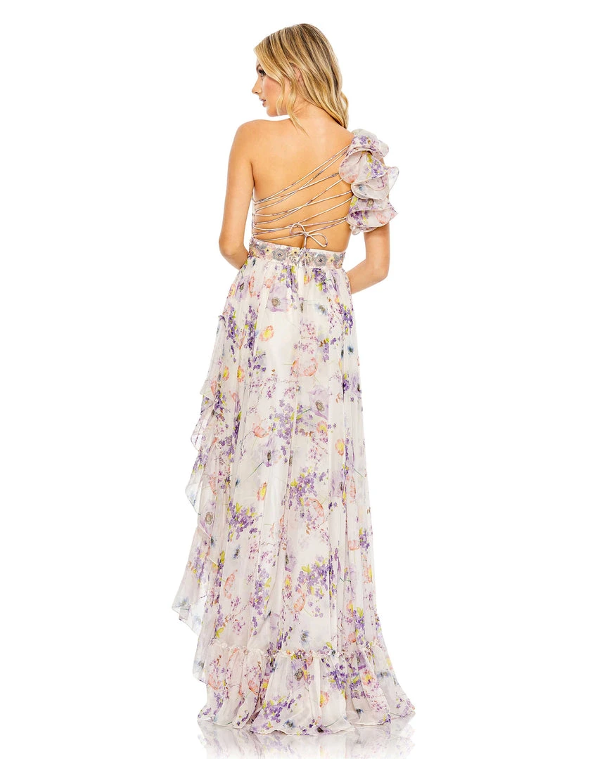 Ieena For Mac Duggal One Shoulder Asymmetrical High Low Gown