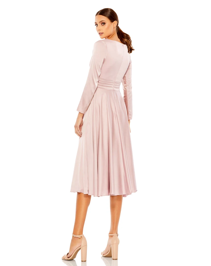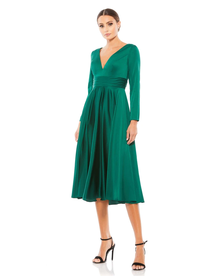 Ieena For Mac Duggal Plunge Neck Satin A-Line Dress