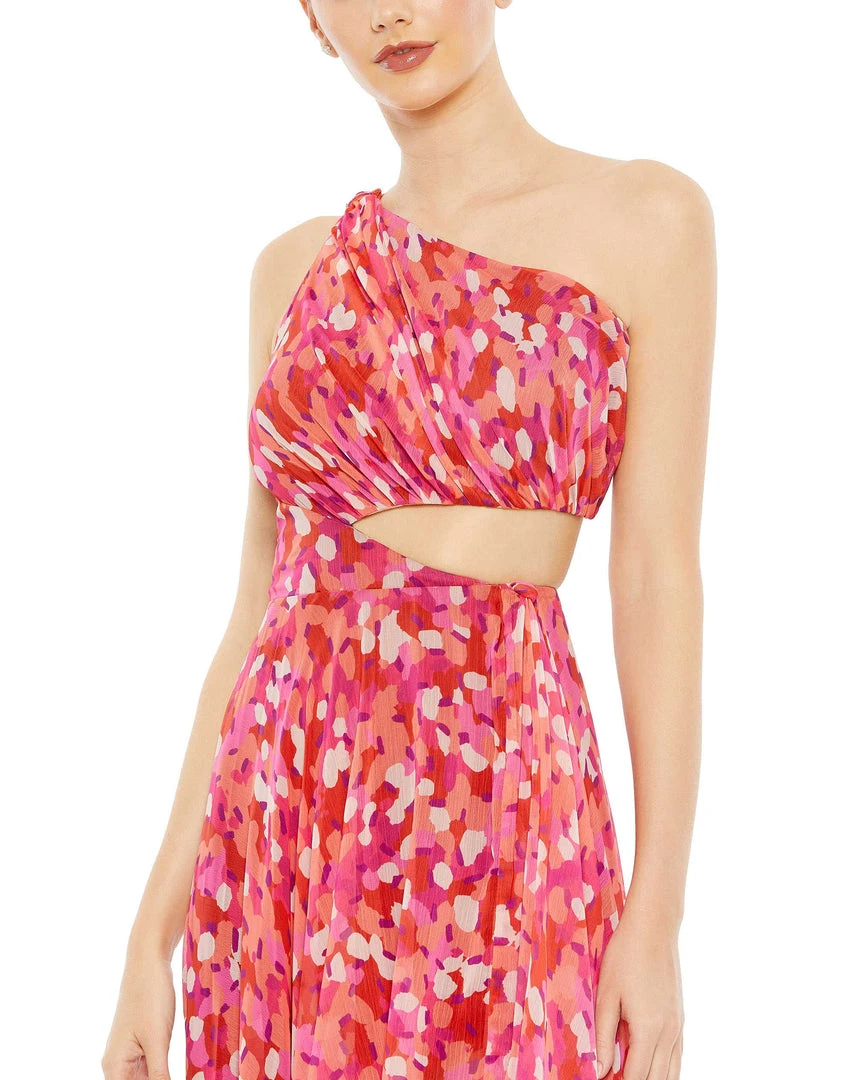 Ieena For Mac Duggal Printed One Shoulder Cut Out Hi-Lo Gown