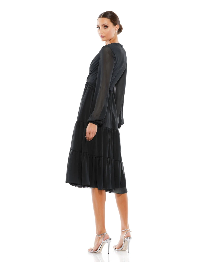 Ieena For Mac Duggal Ruched V-Neck Tiered Midi Dress