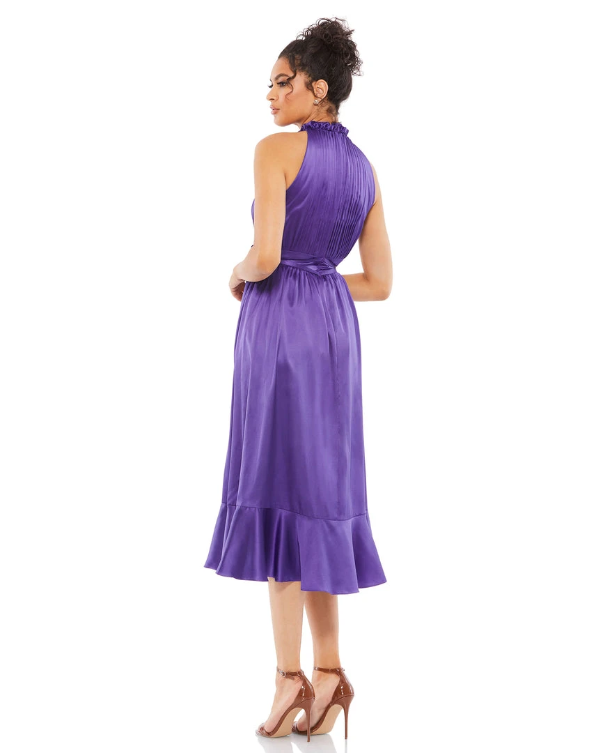 Ieena For Mac Duggal Satin Pleated Halter Neck Midi Dress