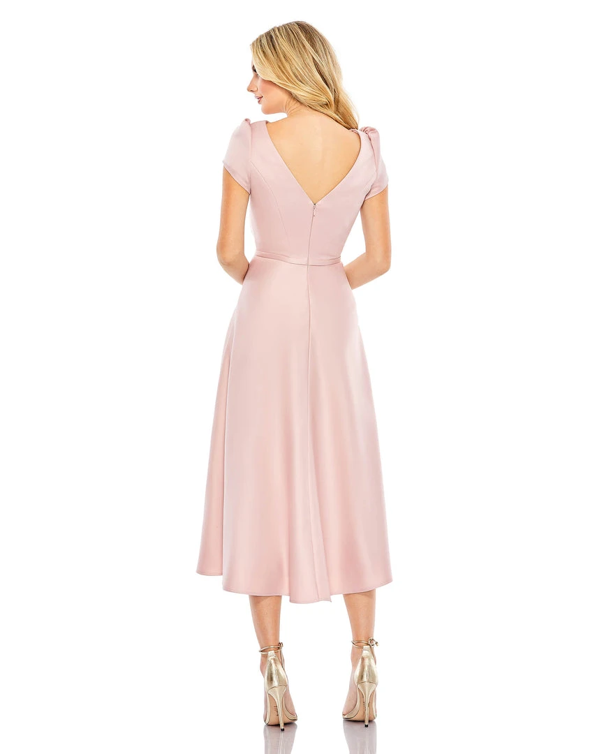 Ieena For Mac Duggal Satin Puff Shoulder Tea Length Dress