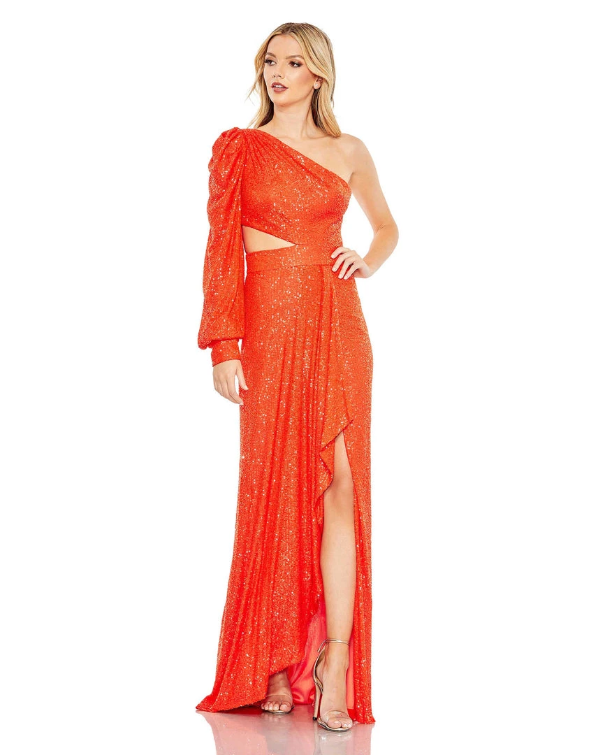 Ieena For Mac Duggal Sequined One Shoulder Cut Out Gown Shop For