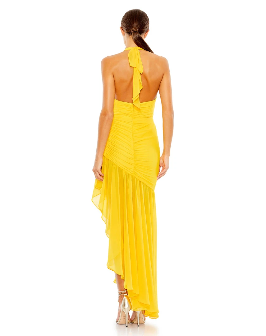 Ieena For Mac Duggal Shop For Asymmetrical Ruffle Hem Halter Strap Gown