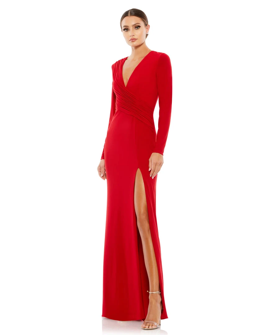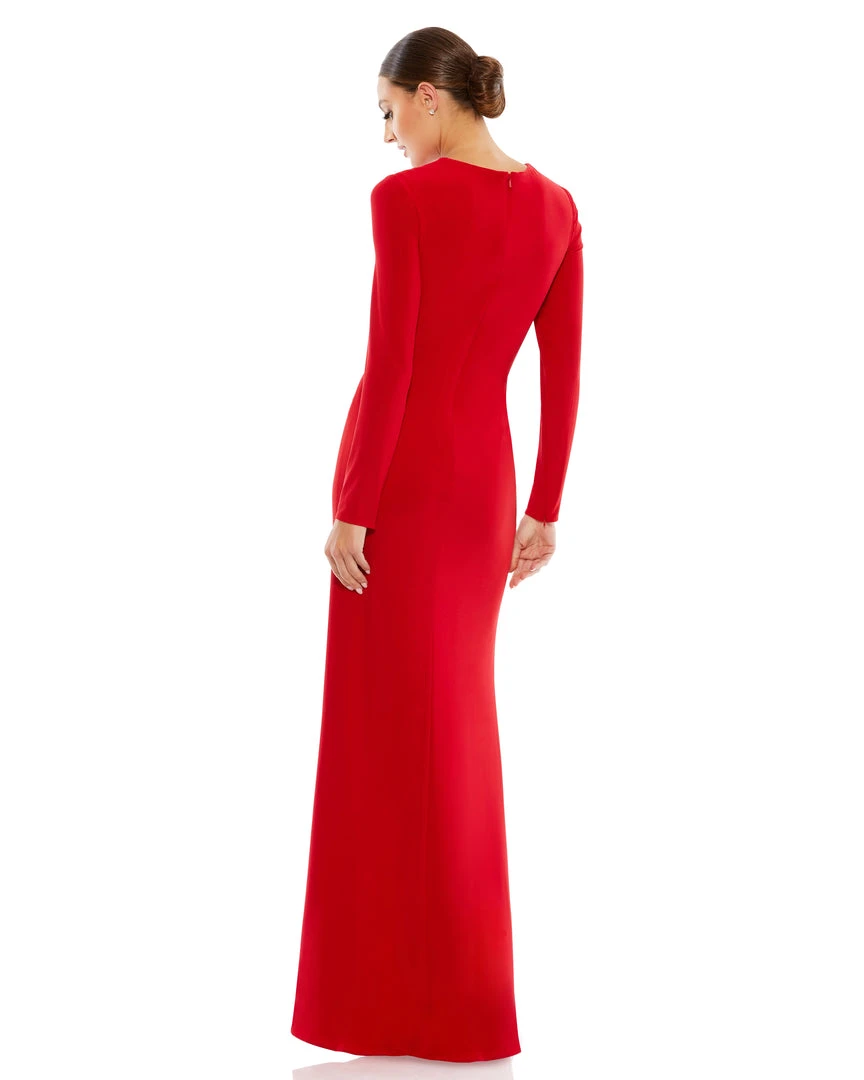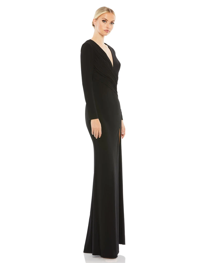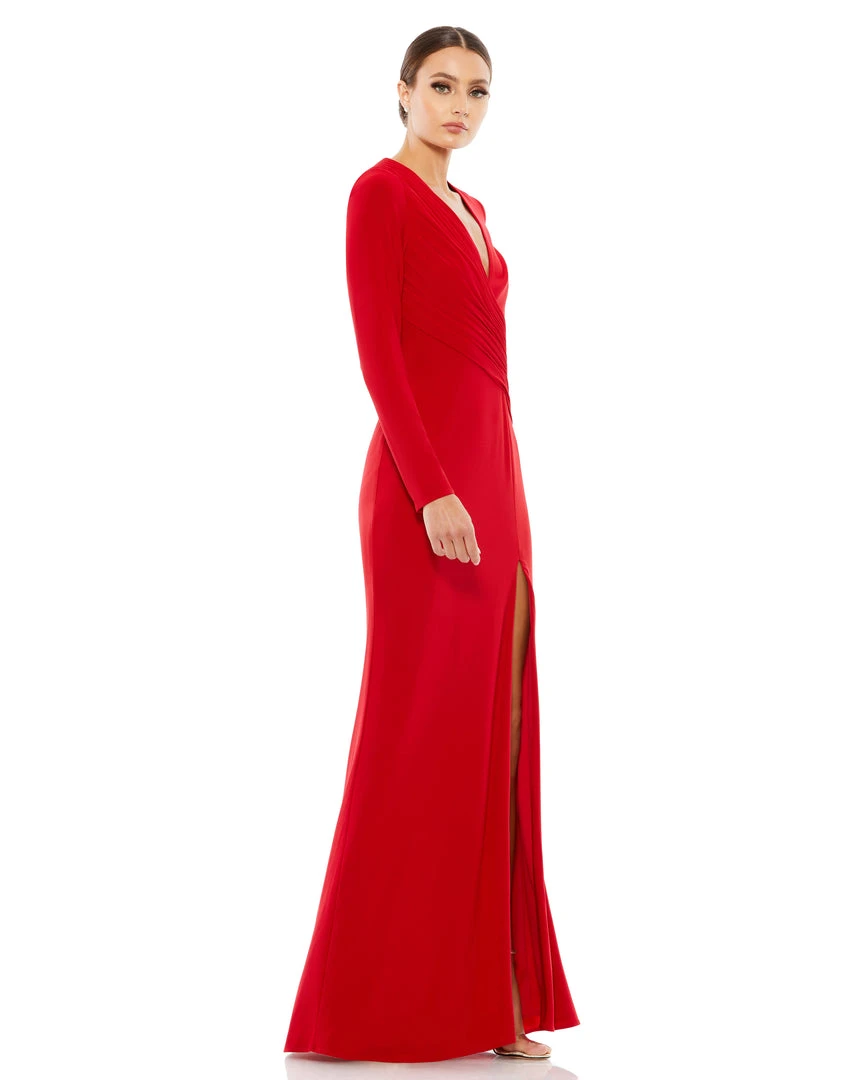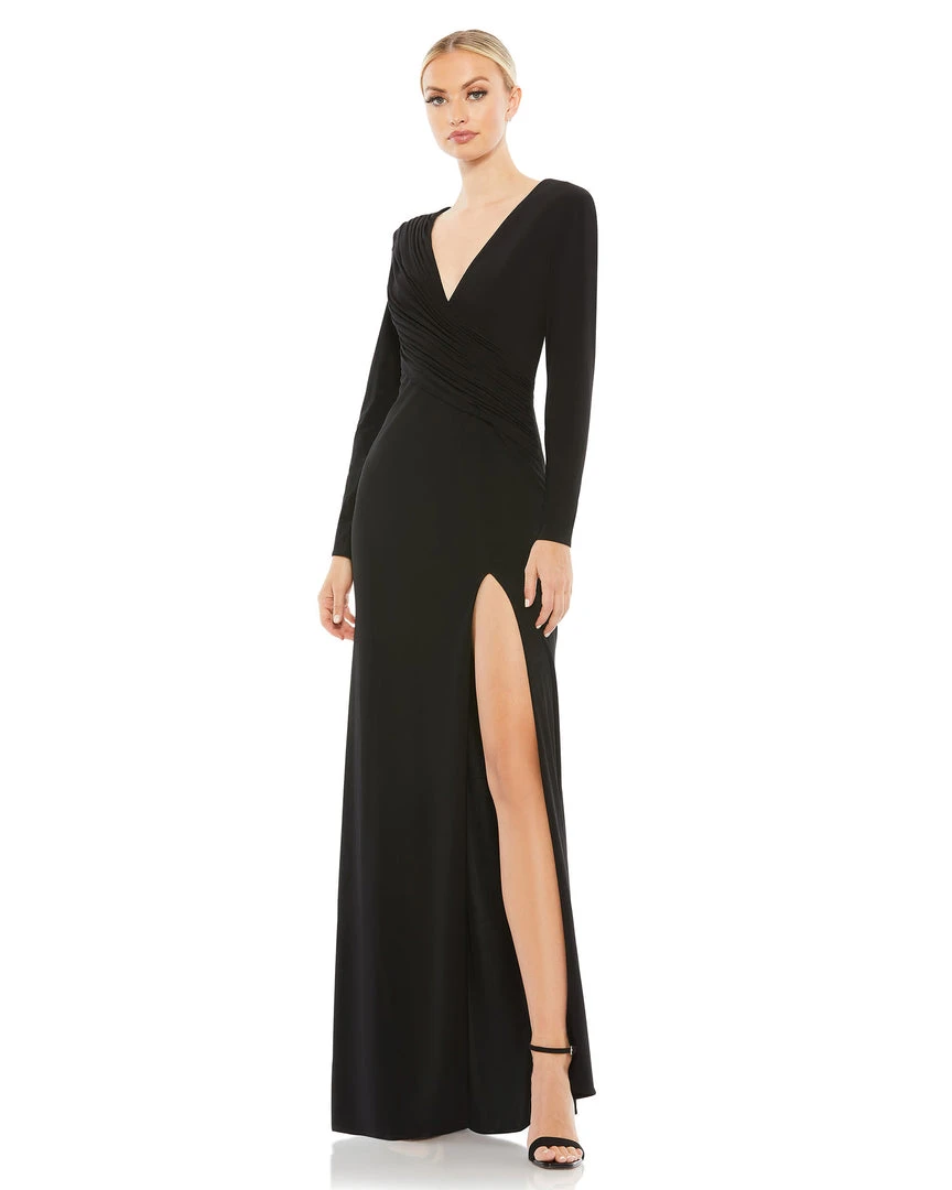 Ieena For Mac Duggal Shop For Jersey Long Sleeve Asymmetrical Ruched Gown