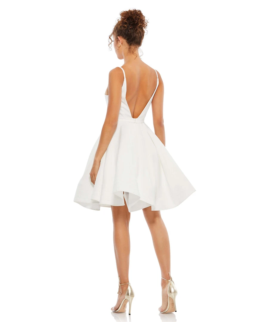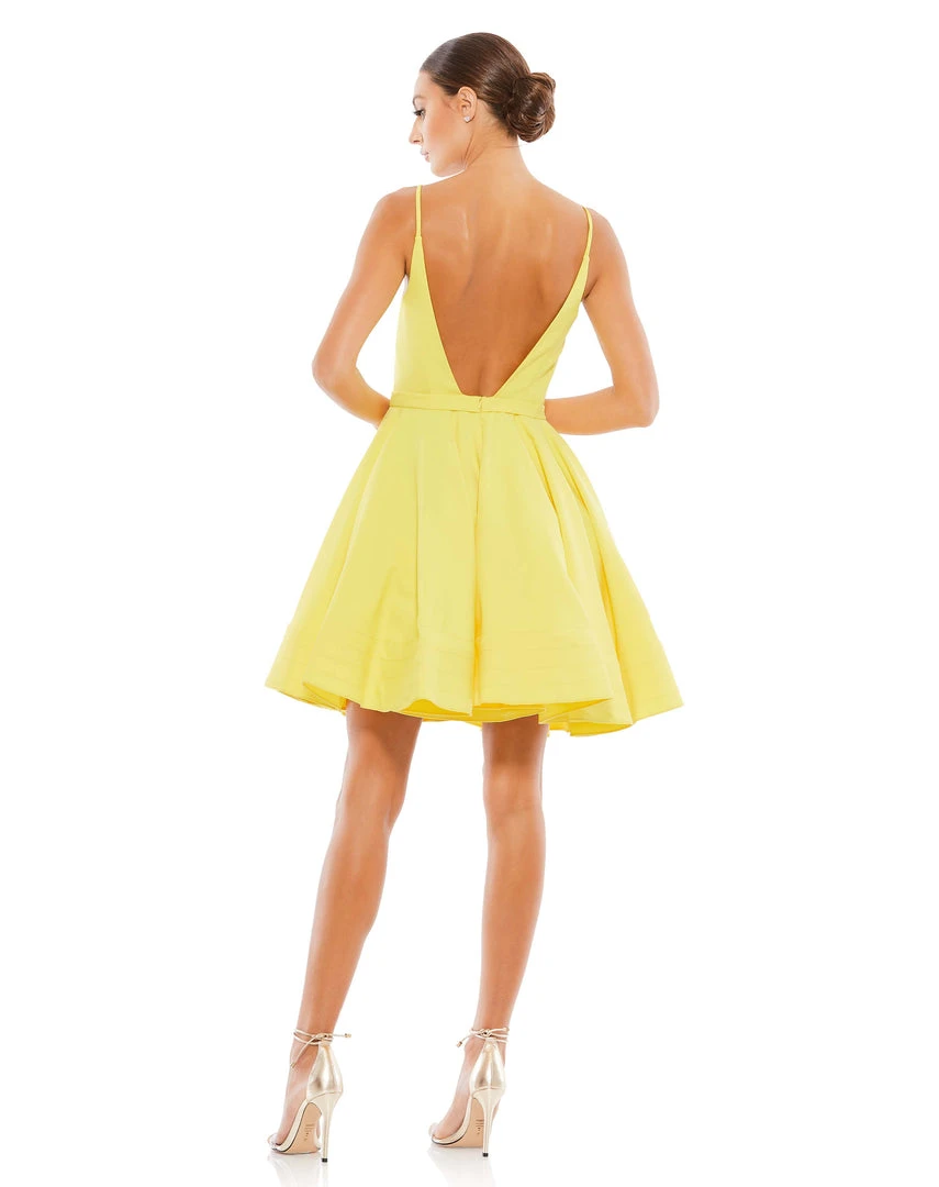 Perfectly tailored fit-and-flare dress finished with a deep v-neck and pockets.