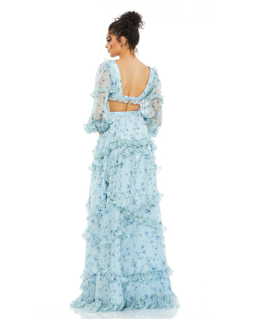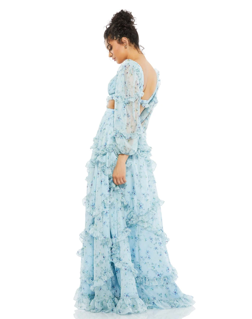 Ieena For Mac Duggal Shop For Ruffle Tiered Floral Cutout Long Sleeve Gown