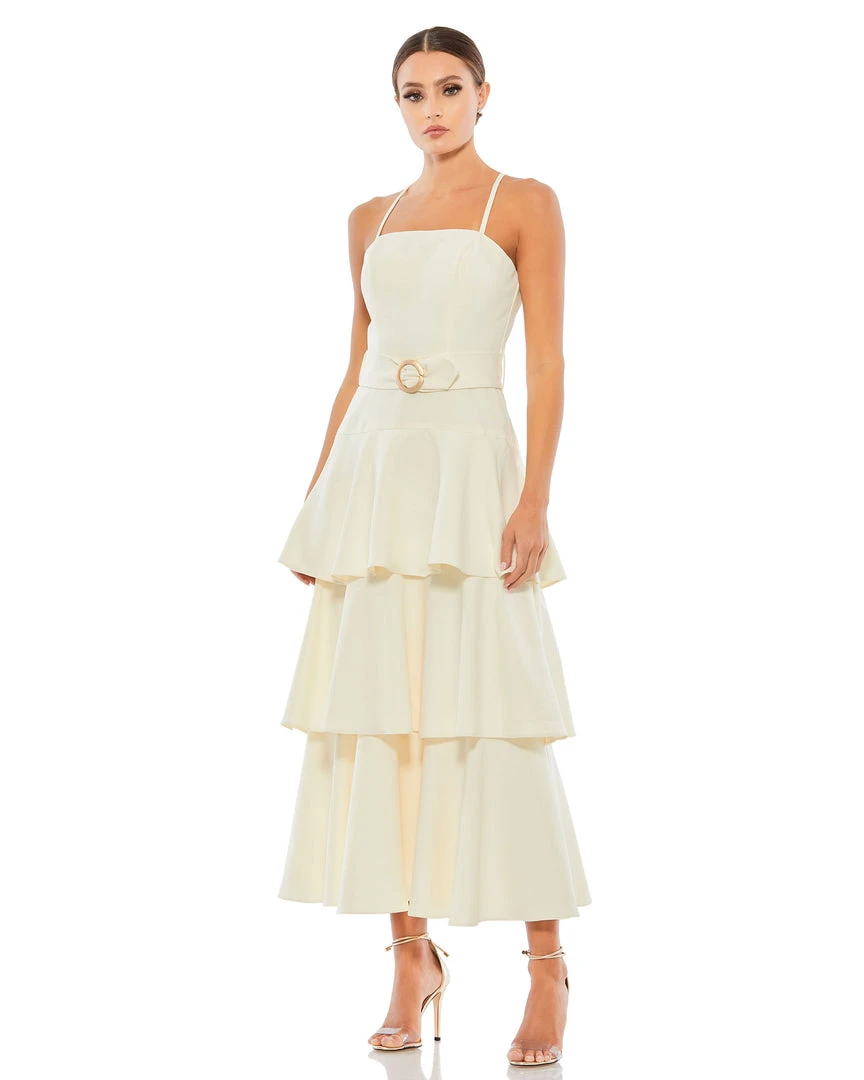 Ieena For Mac Duggal Shop For Tiered Ruffle Belted Sleeveless Midi Dress