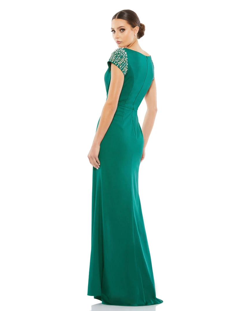 Mac Duggal Beaded Cap Sleeve Bateau Column Dress Shop For