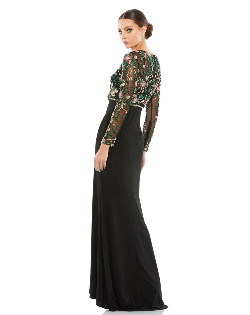 Mac Duggal Beaded Illusion High Neck Trumpet Gown