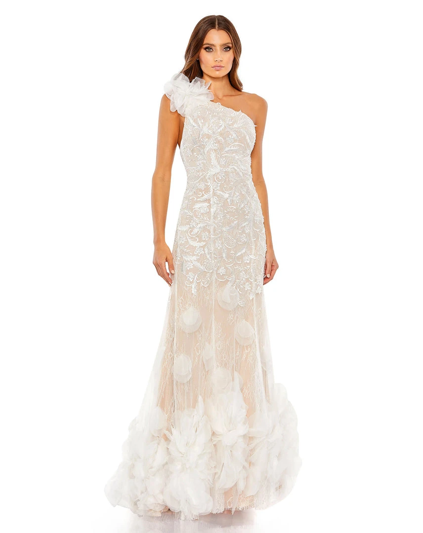 Mac Duggal Beaded Strappy One Shoulder Petal Mermaid Gown Shop For