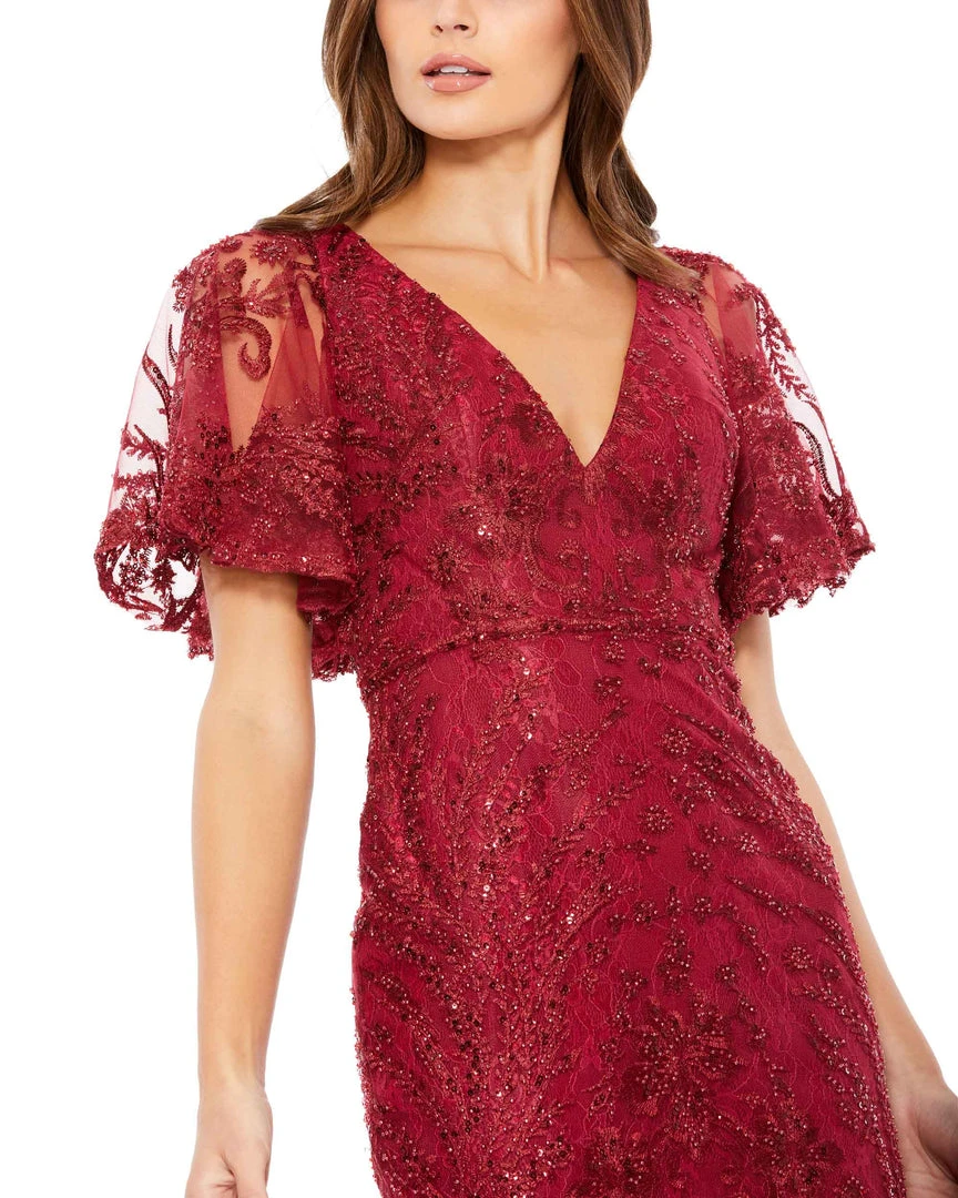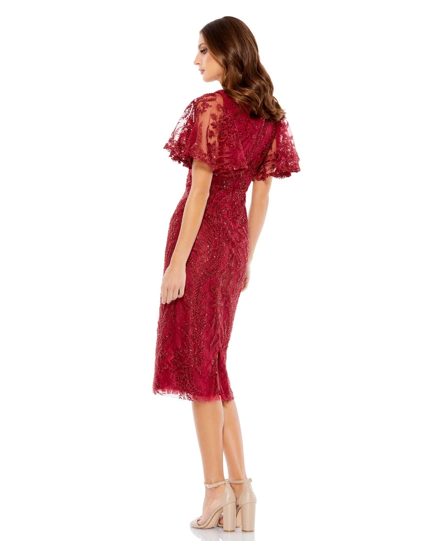 Mac Duggal Cocktail Dresses Embellished Flutter Sleeve V Neck Fitted Dress