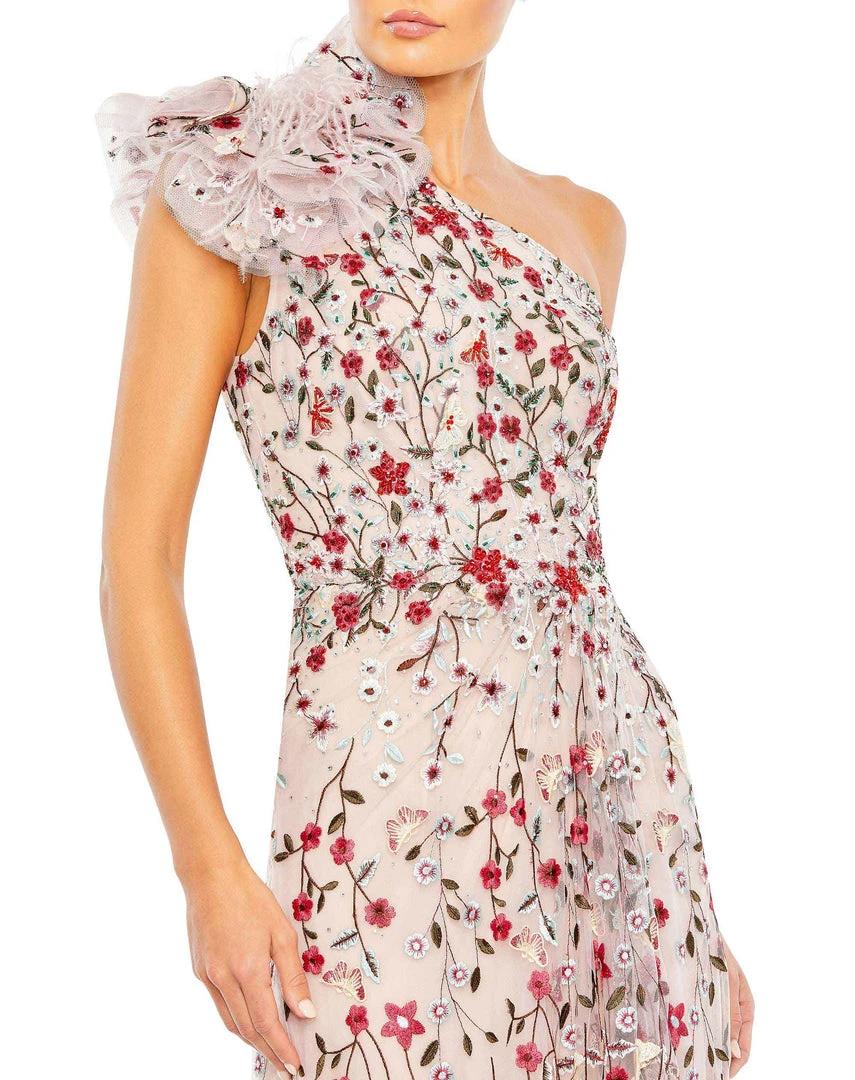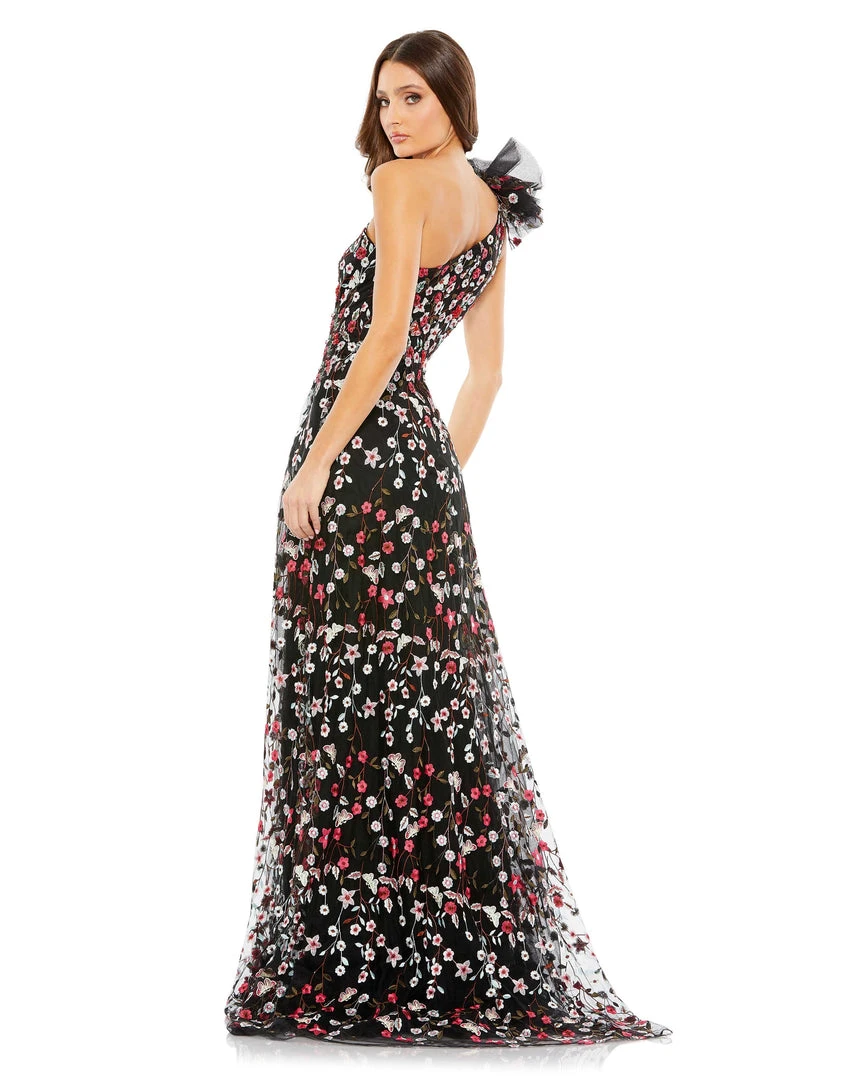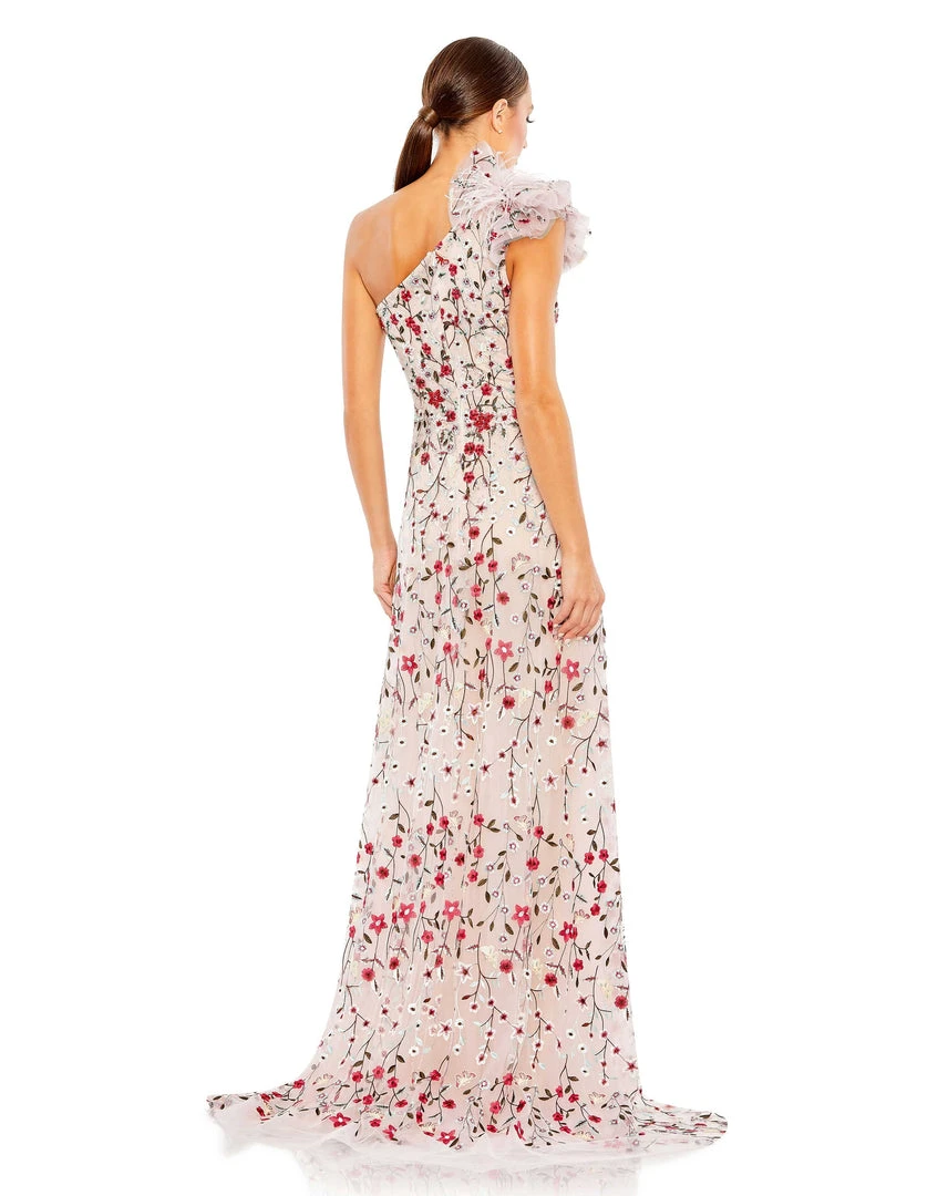 Mac Duggal Embellished Ruffled One Shoulder A Line Gown
