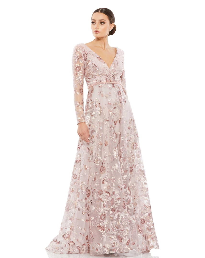 SKU: mac-duggal-7077702271155 Categories: Evening Gowns, Long Dresses, Shop by Length, Shop For Tags: Appliqué & Embroidery, Evening, Floral, Long Sleeve, Maxi & Floor Length, POB, Sequins, V-Neck