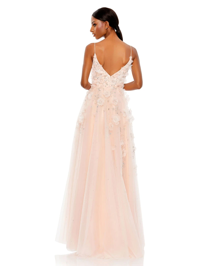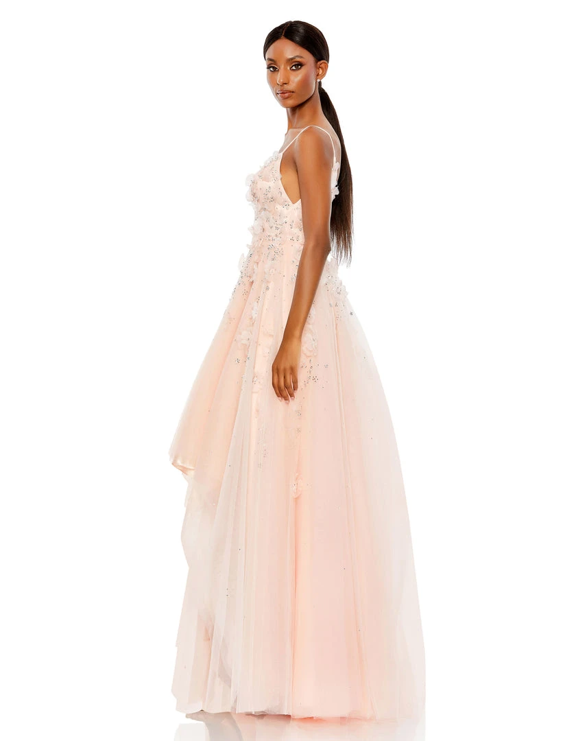 Mac Duggal Floral Embellished Sleeveless High Low Gown