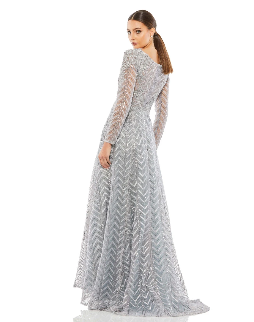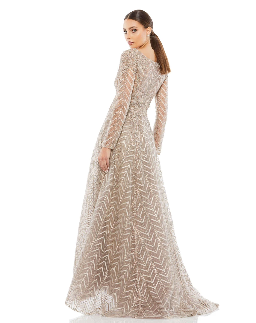 Mac Duggal Long Sleeve Chevron Embroidered Gown Shop For