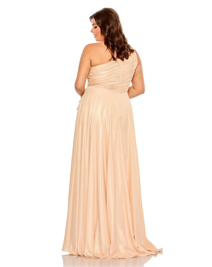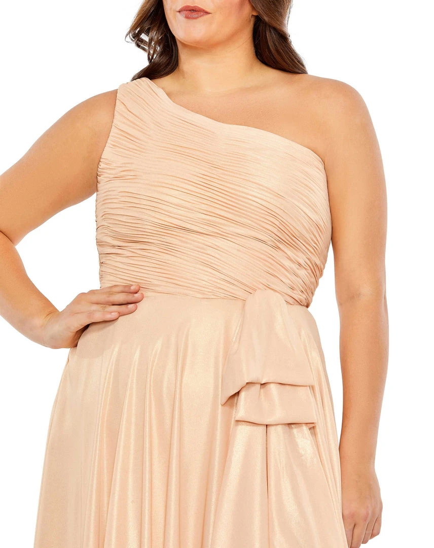 Mac Duggal Ruched One Shoulder Soft Tie Draped A Line Gown (Plus) Shop For