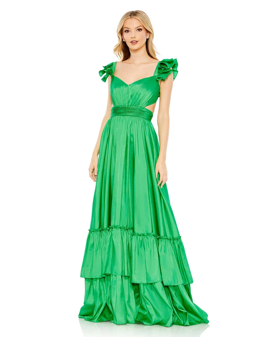 Mac Duggal Ruffle Shoulder Cut Out Gown