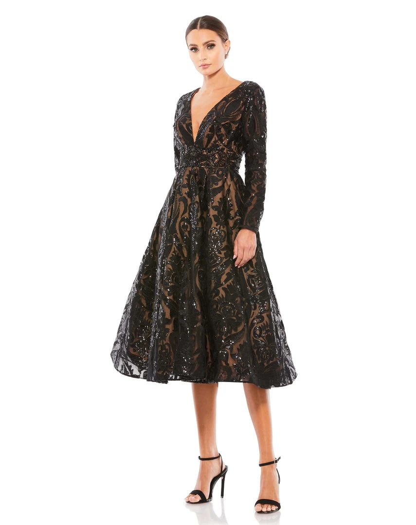 SKU: mac-duggal-6627995910323 Categories: Cocktail Dresses, Midi Dresses, Shop by Length, Shop For, The Wedding Shop, Wedding Guest Tags: Appliqué & Embroidery, Beaded, Cocktail, Long Sleeve, Midi & Tea Length, Sequins, V-Neck, Wedding Guest