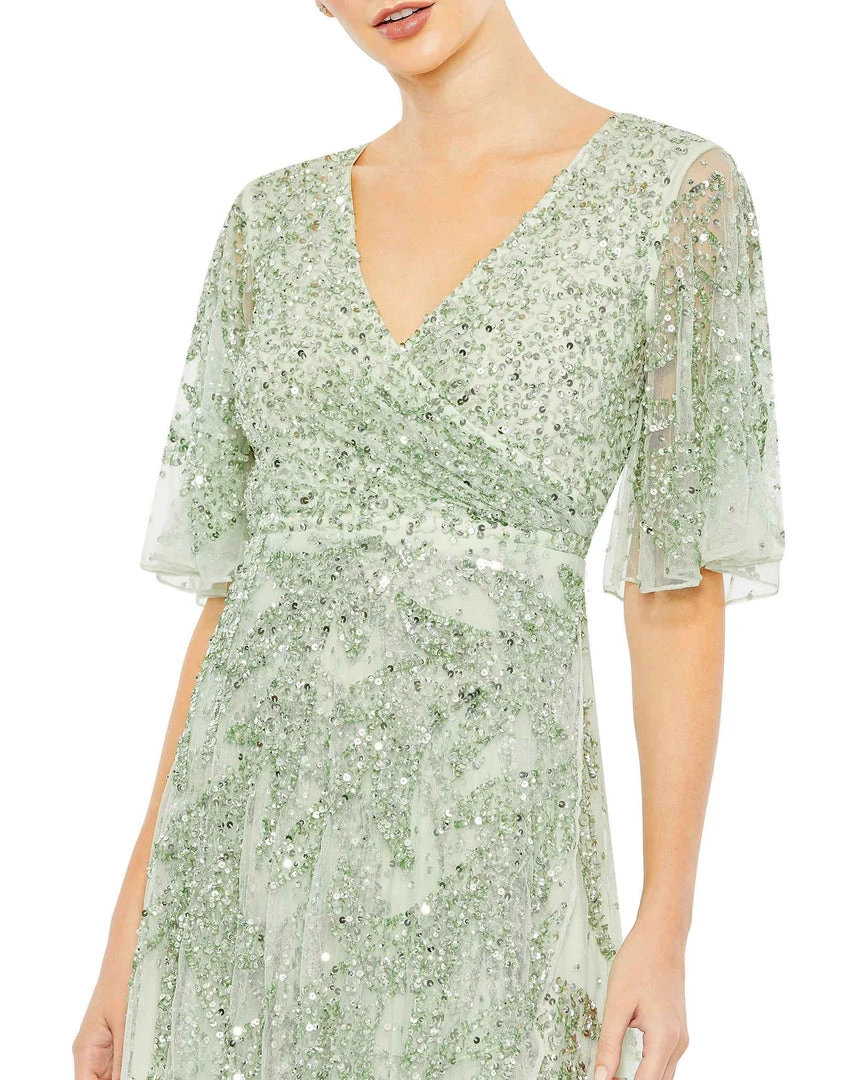 SKU: mac-duggal-7085062160563 Categories: Mother of the Bride + Groom Dresses, The Wedding Shop Tags: Evening, Green, Hi-Low, Maxi & Floor Length, Sequined, Sequins, Short Sleeve, V-Neck