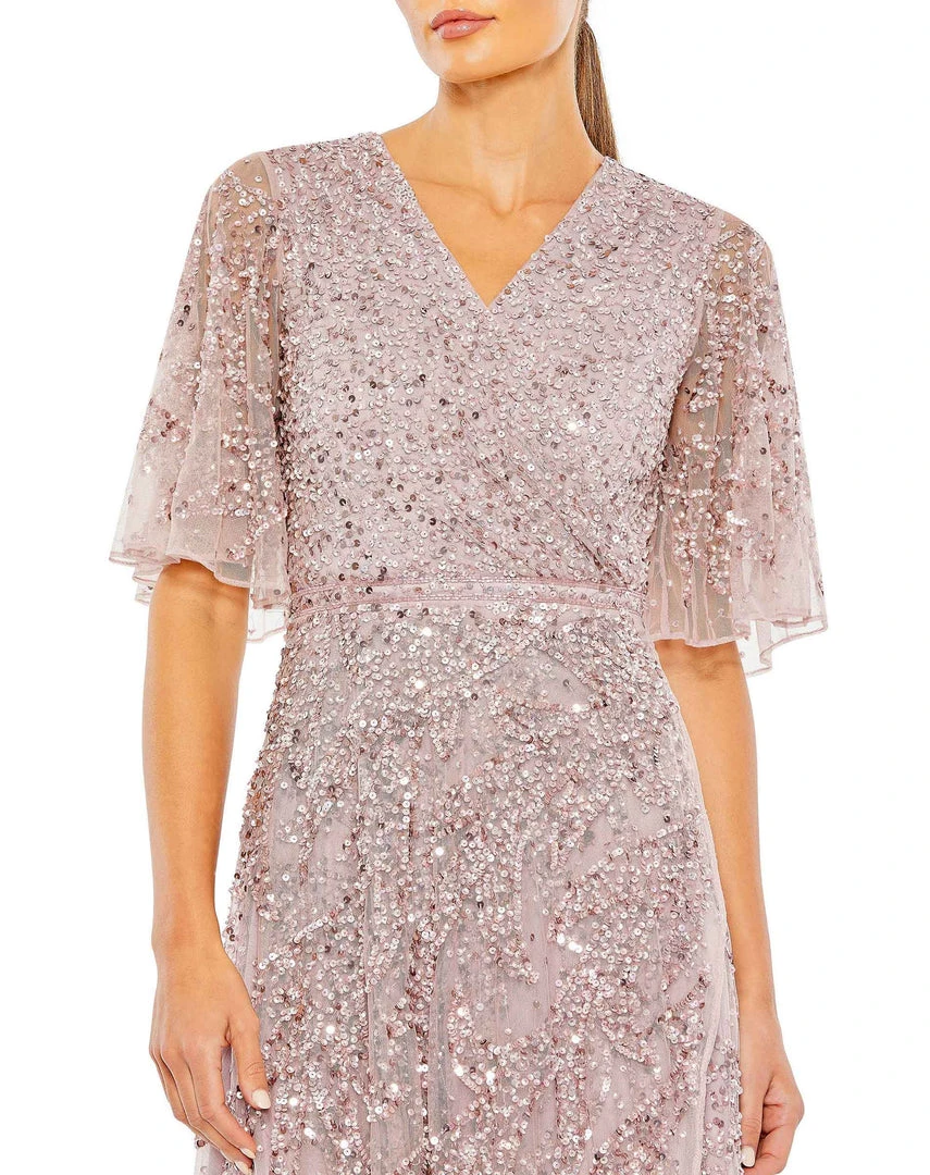 Be the first to review “Mac Duggal Sequined Butterfly Sleeve High Low Gown” Cancel reply