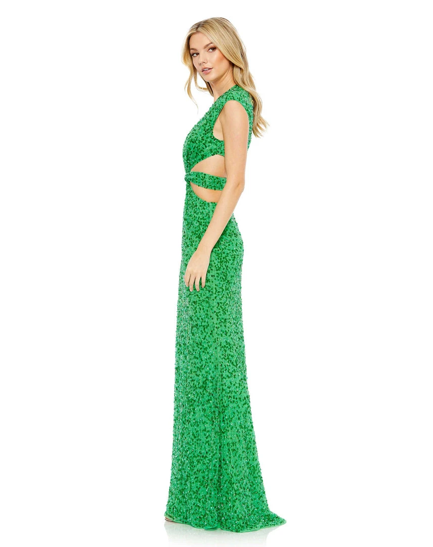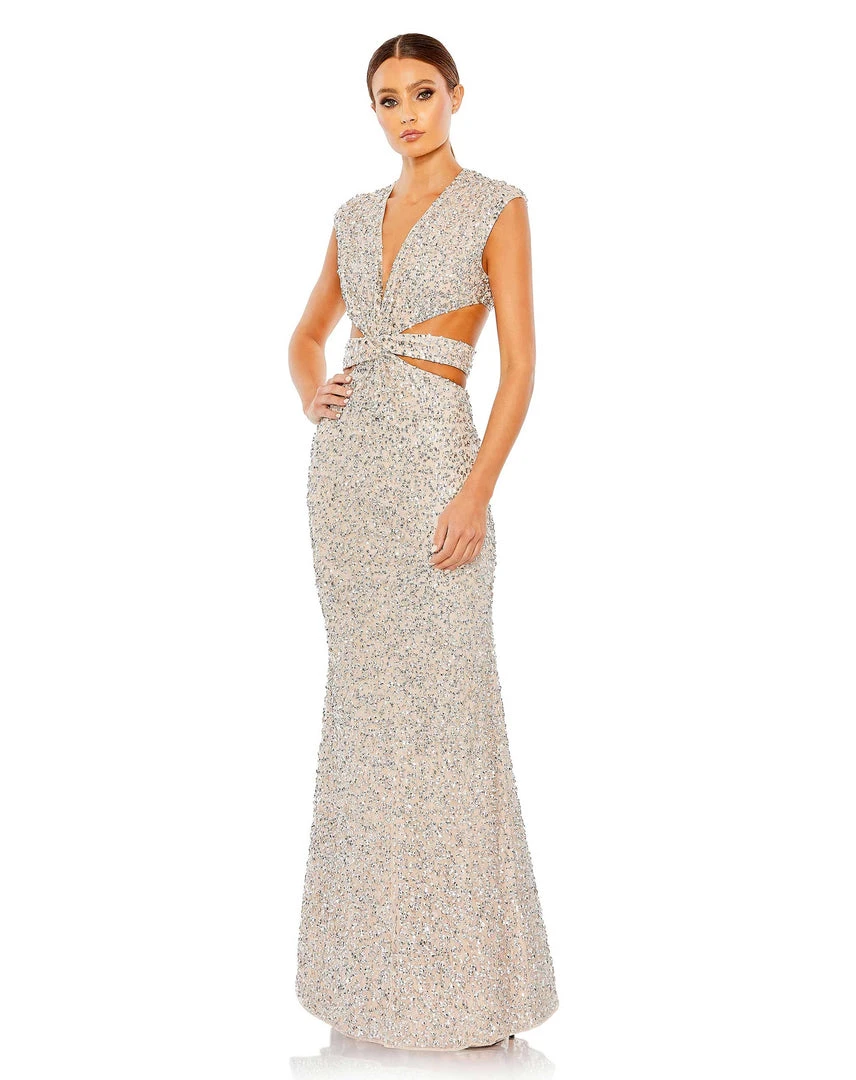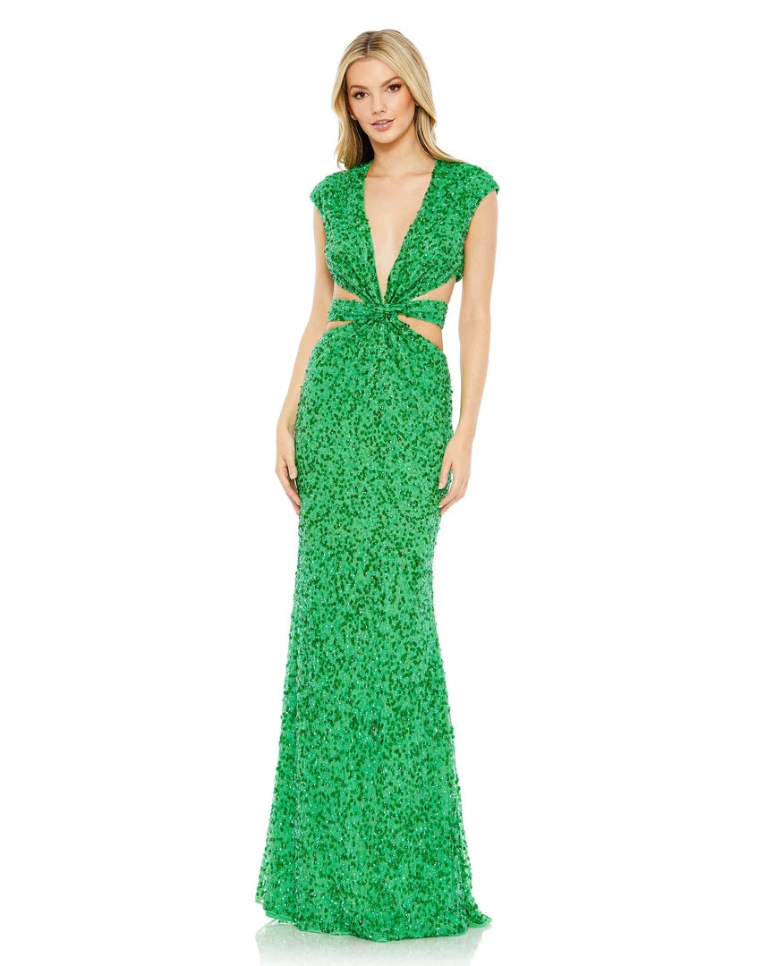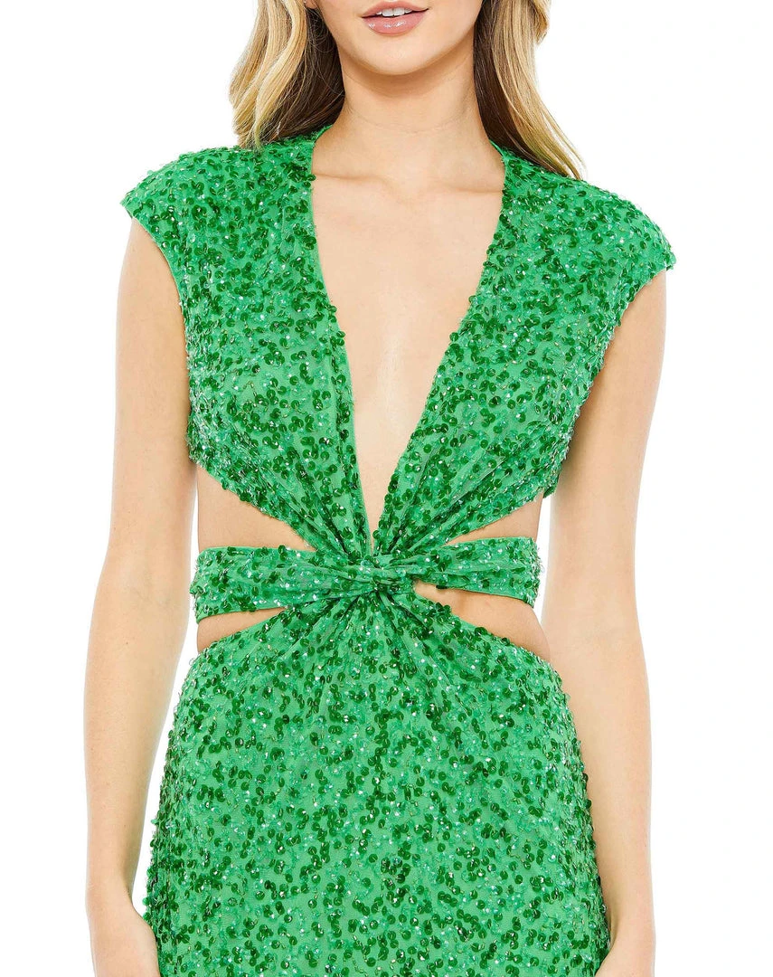 Mac Duggal Sequined Cap Sleeveless Plunge Neck Cut Out Gown Shop For