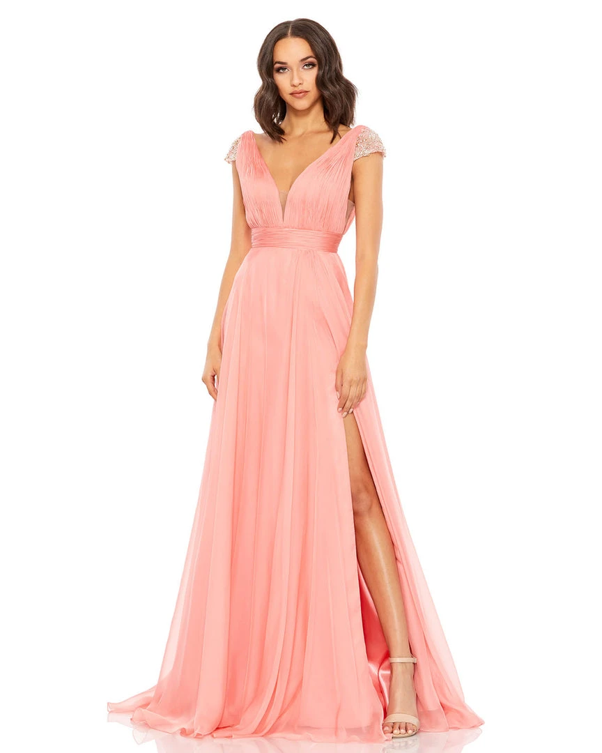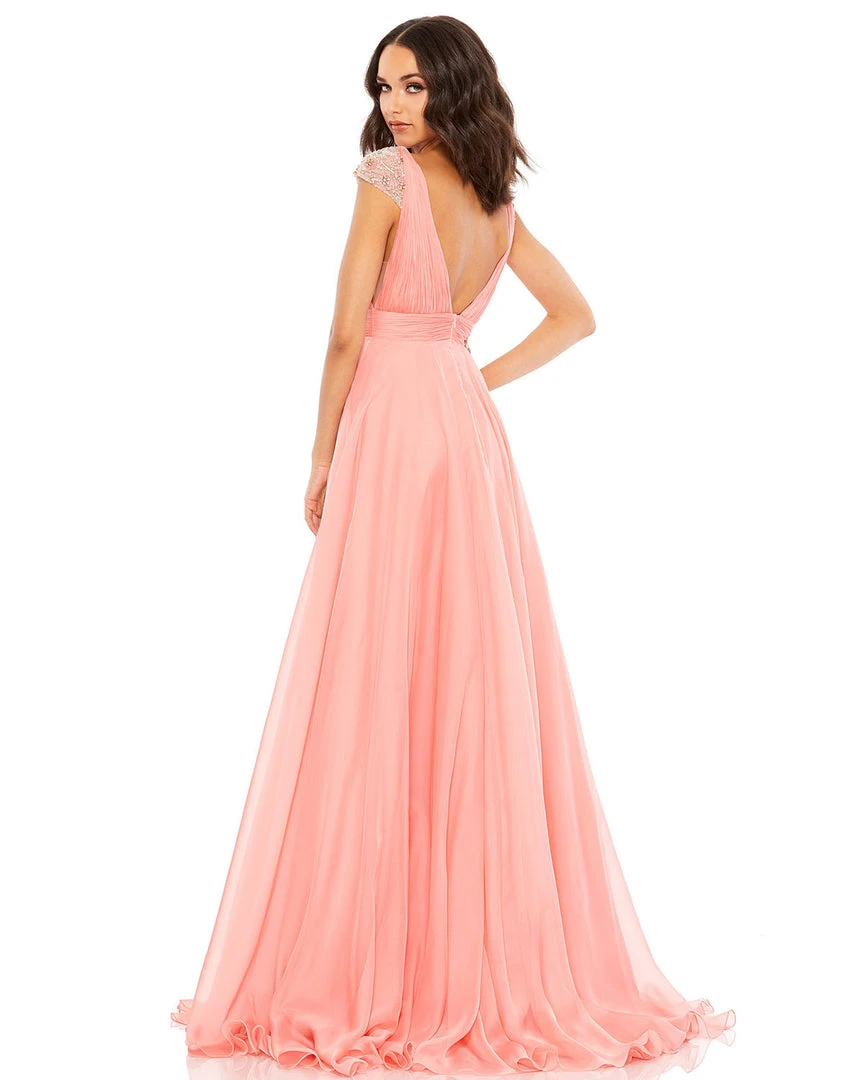 Mac Duggal Shop For Chiffon Beaded Cap Sleeve A Line Gown