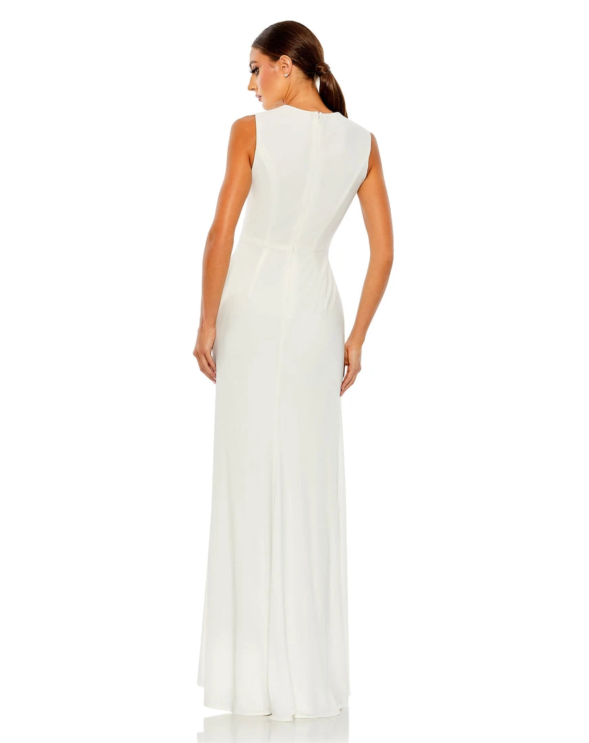 Mac Duggal Shop For Draped Side Knot Jersey Gown W/ Rhinestone Ring