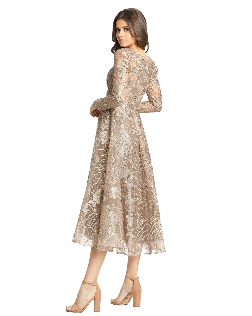 Mac Duggal Shop For Embellished Plunge Neck Illusion Long Sleeve Midi