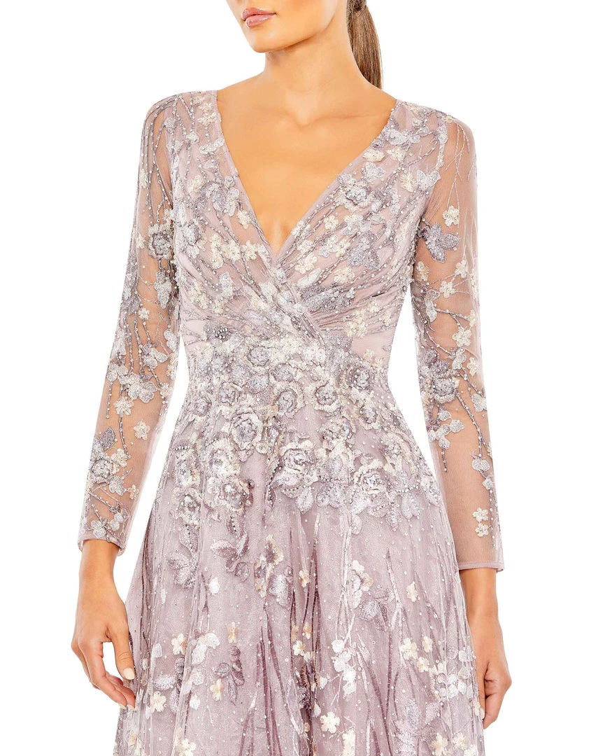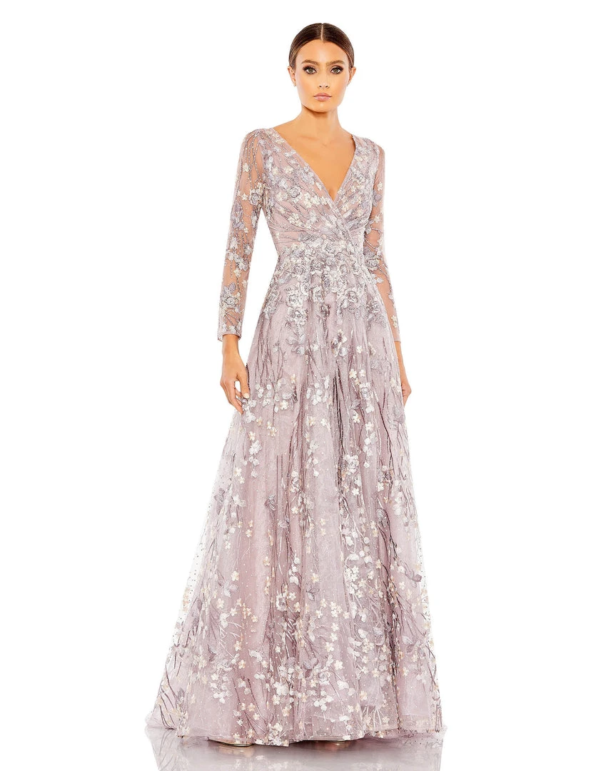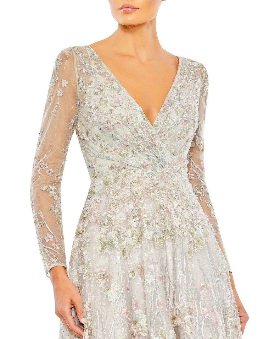 SKU: mac-duggal-7116210143411 Categories: Evening Gowns, Long Dresses, Shop by Length, Shop For Tags: Appliqué & Embroidery, Evening, Floral, Long Sleeve, Maxi & Floor Length, Rhinestone & Jewels, V-Neck