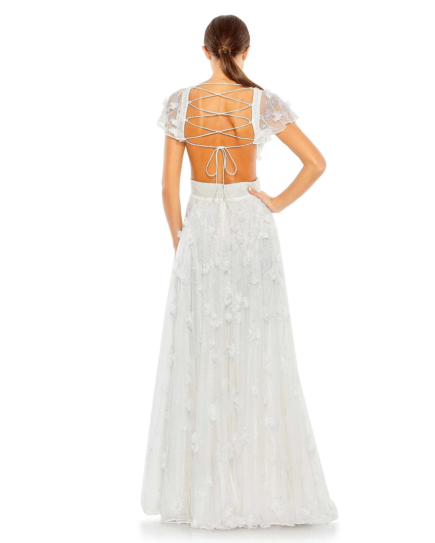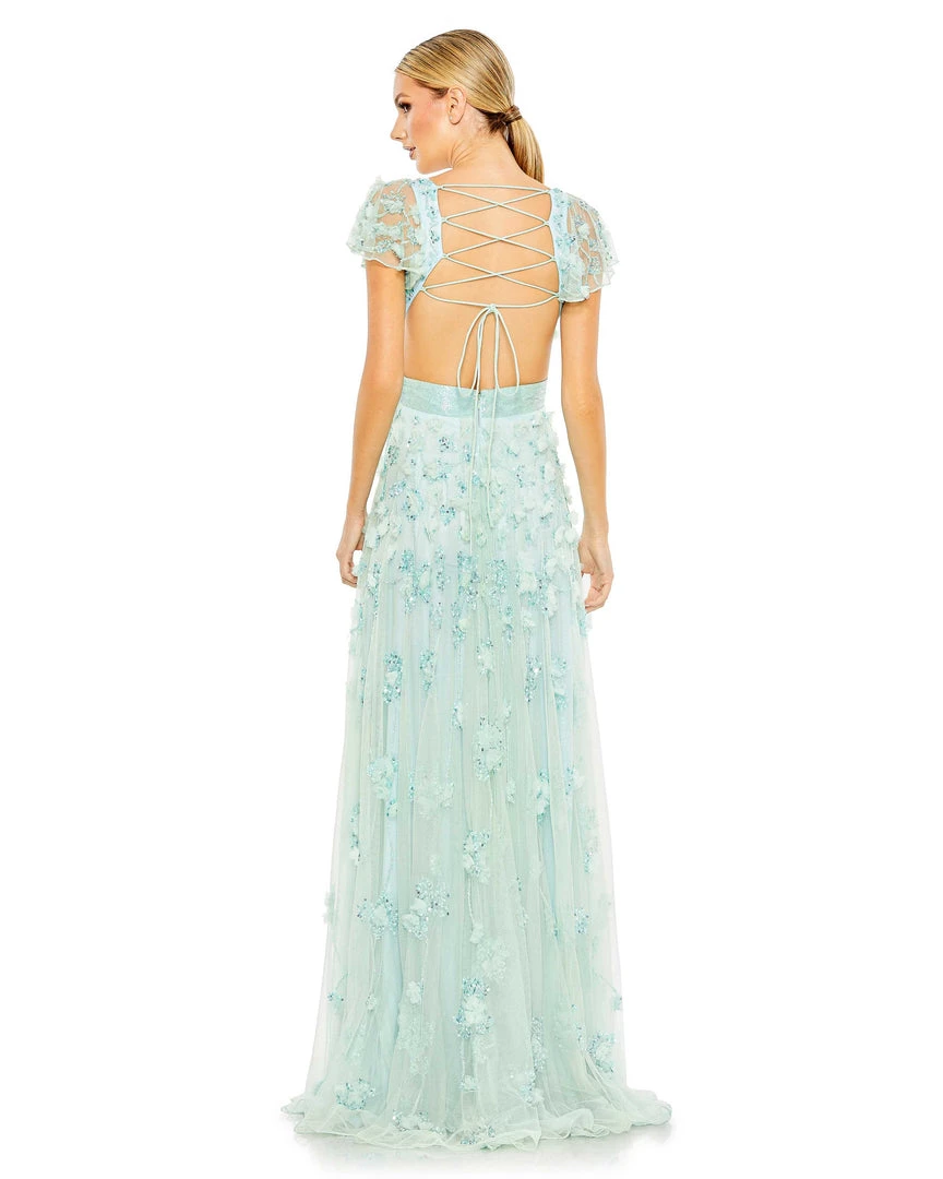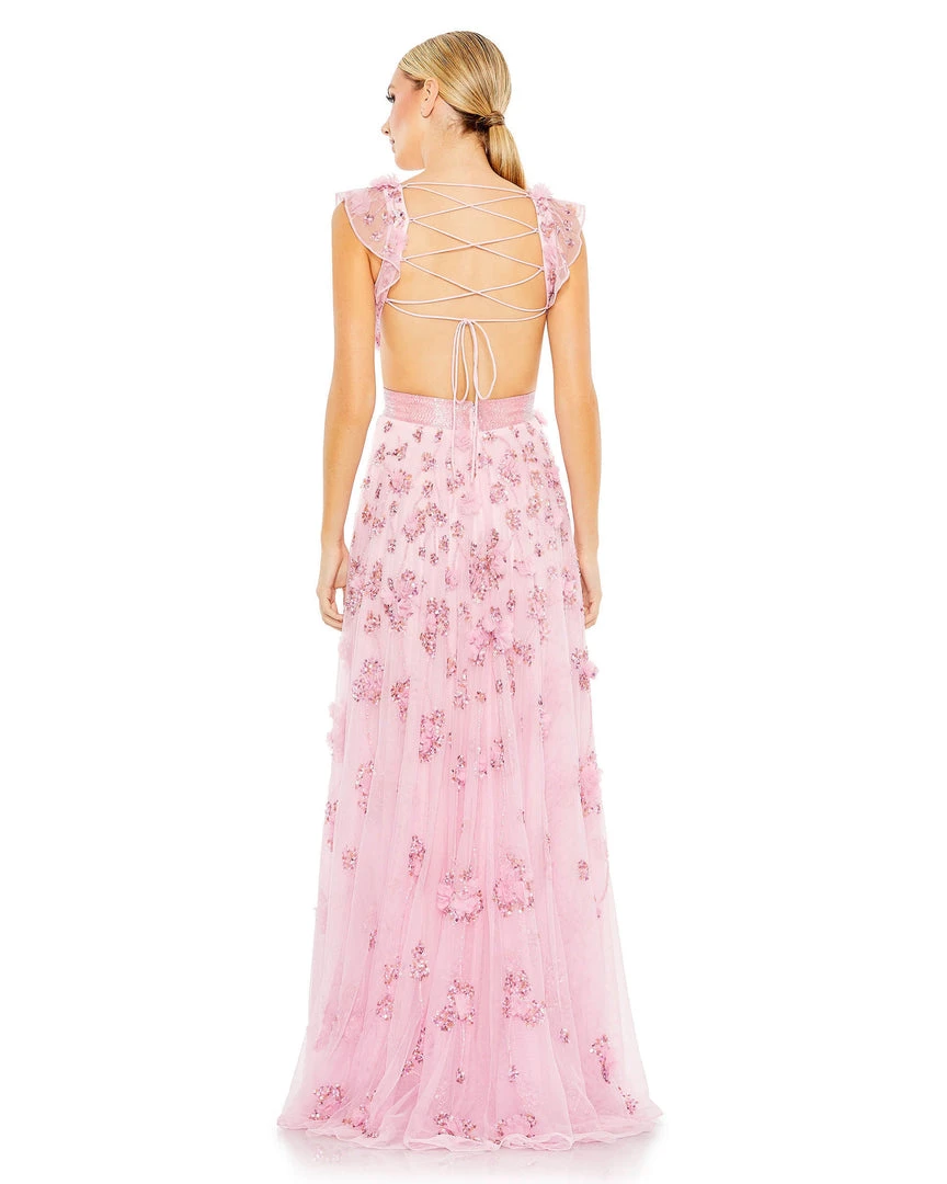 Mac Duggal Shop For Floral Embellished Lace Up Flowy Gown