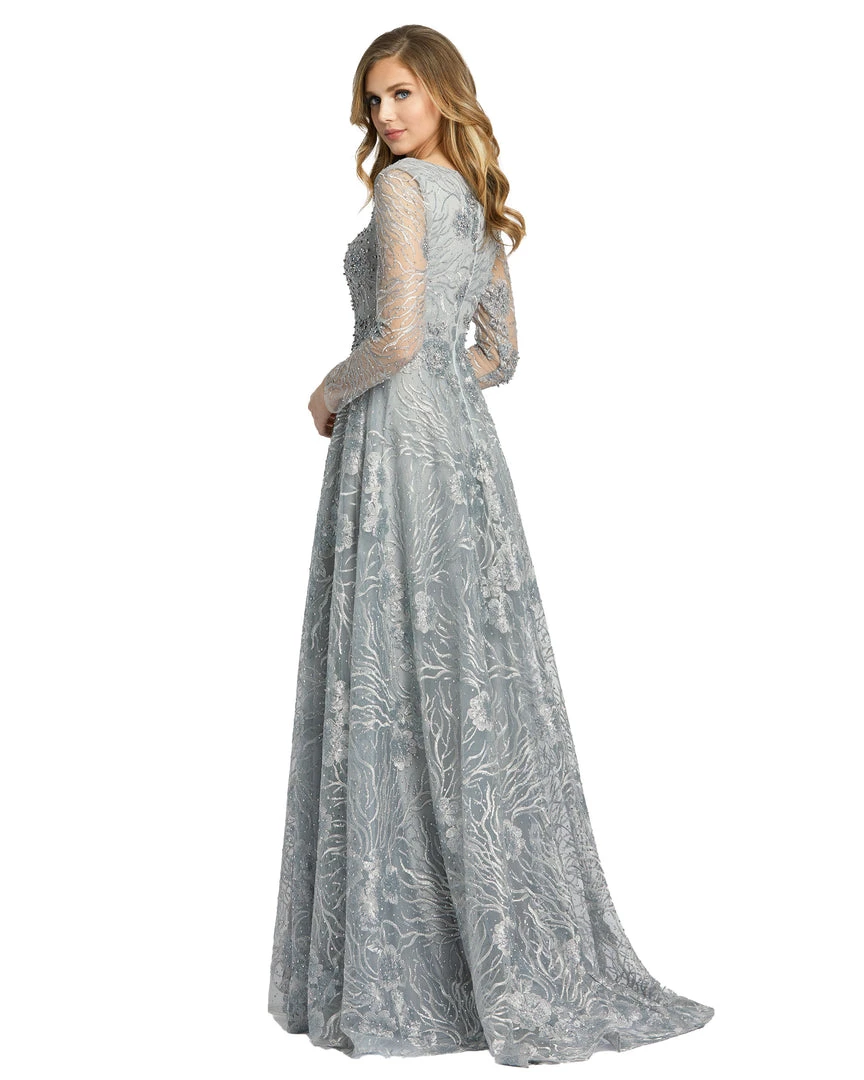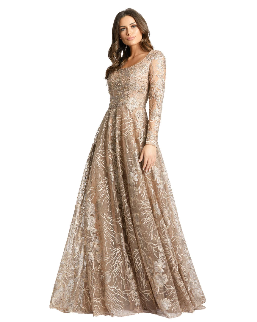 Mac Duggal Shop For Floral Embroidered Long Sleeve Square Neck Gown