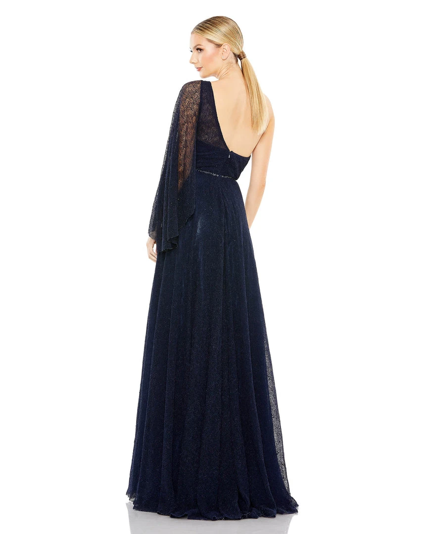 Mac Duggal Shop For One-Shoulder Bell Sleeve Lace Gown