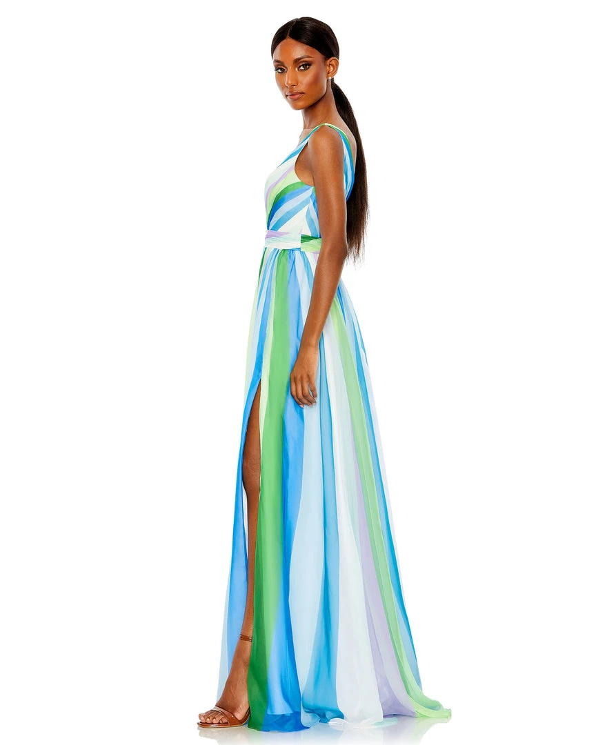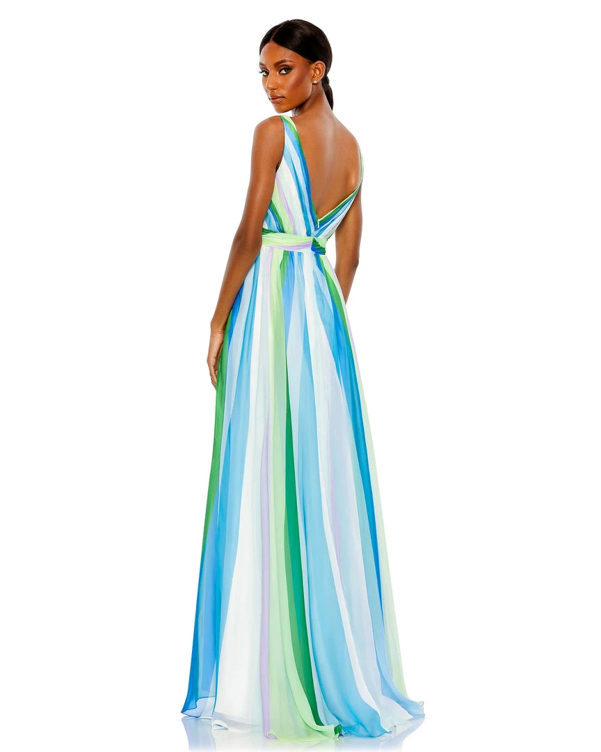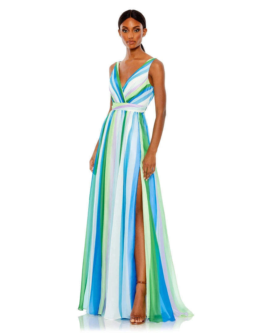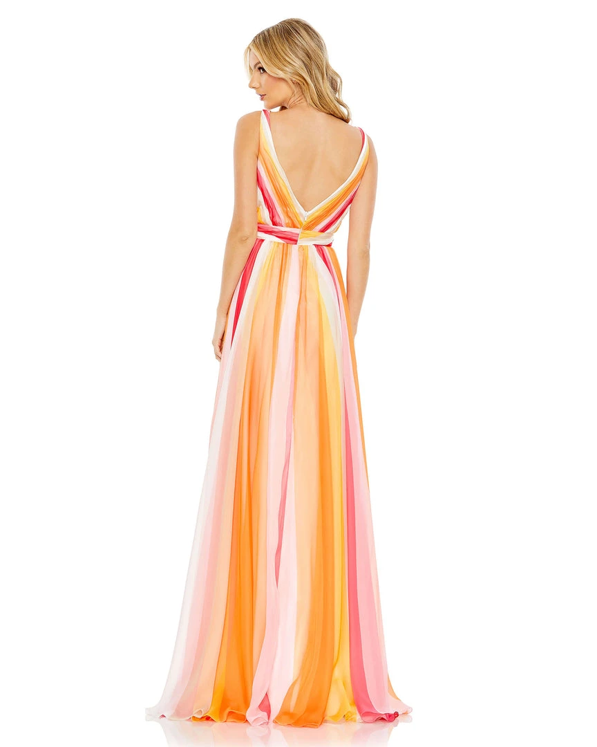 Perfect for prom, a summer wedding, or a formal soirée, this gown is crafted from chiffon punched up with sunrise-shaded streaks. Comfortable and effortless, the gown offers easy elegance with a surplice neckline, set-on waistband, and flowy A-line skirt finished with an off-center slit.
